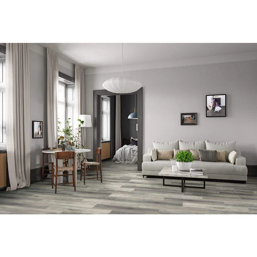 Achieve a seamless authentic wood look with the Big Bear Oak 7 in. x 42 in. Luxury Vinyl Plank. It can be used throughout your home in the kitchen, living area, bathroom or even basement to create a luxurious, affordable and low maintenance flooring solution. This flooring is easy to install with its locking system making it DIY-friendly and it gives supreme comfort when under foot. It will withstand the test of time with features like 100% waterproof, scratch, stain and dent resistant and of course a limited lifetime residential warranty. It retains elegance with the beautiful gray tones and delicate brown graining too.