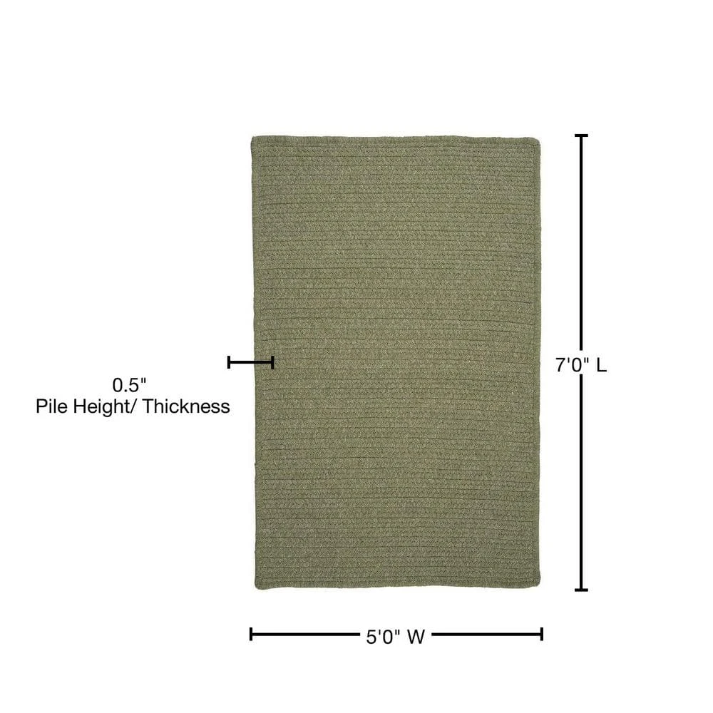 Choose the Home Decorators Collection 5 ft. x 7 ft. Area Rug to enhance your home. This rectangular rug is designed with green elements, adding a vibrant accent into your space. It is made from wool, designed to withstand frequent use without getting damaged. With materials known to have low VOC emissions, it will not need to be aerated before being brought indoors. It has a braided weave type and the same design on both sides.